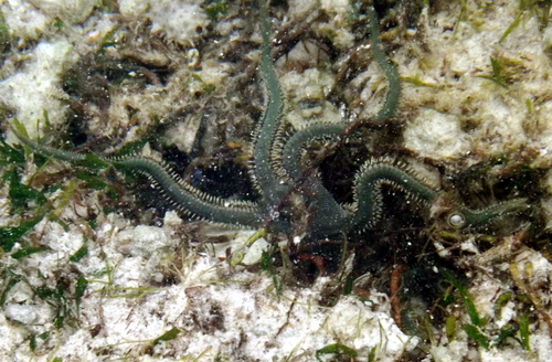 Stor grön brittle star kÀnd för rovdjursbenÀgenhet.