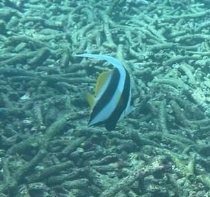 Kallad fattigmans moorish idol — liknande form men mycket lättare att hålla. Svart-vit med långsam ryggfena och gul bröst.